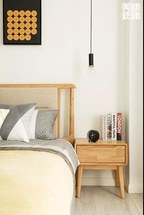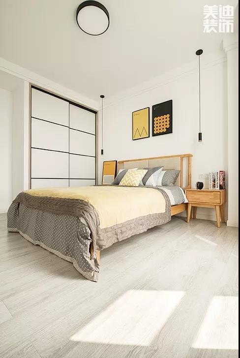 北歐風范臥室松軟舒適,床頭球形小吊燈搭配灰白結(jié)合的墻面,提升空間的質(zhì)感。衣柜與整體風格搭配統(tǒng)一,精致又有收納作用。