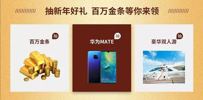 簽約即可抽取新年好禮,百萬金條、華為MATE手機、豪華雙人游等你來領