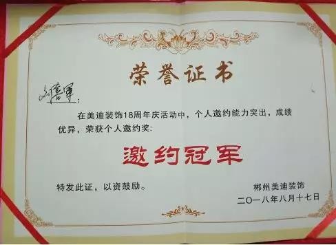 真誠服務,一直是他工作上對自己的要求,他說:“我印象最深的客戶,就是宜章縣幸福城楊哥。當時楊哥是2018年中午1點多咨詢的,看到信息馬上精神抖擻第一時間聯(lián)系了客戶,然后了解到客戶是和自己同一年的,小孩也差不多大,是醫(yī)生剛好自己家里有親戚都是從事這個行業(yè),然后聊生活聊家庭聊職業(yè)以非常敬佩醫(yī)生的角度去交流,到晚上客戶很爽快的答應第二天早上從鄉(xiāng)下來公司,客戶原本約了其它公司的,然后把他們時間都推了,晚上和設計師對接好客戶明天幾口人來大概幾點到郴州,第二天一大早和設計師王老師還沒有上班就去天龍站等待客戶,接到客戶到樓上給客戶點了早餐吃,第一次來客戶還是比較謹慎也是很認真的在聽我們講解,中途客戶小孩一直是在吵鬧,因為人手不夠我當天負責幫客戶帶兩個小孩,買東西吃喂飯,其中有點令客戶非常認可,客戶小孩在公司大廳拉屎了,他是二話不說自己拿一張紙把屎抓了起來,最終在設計師和大概共同努力下客戶當天就簽了合同,后面客戶也是非常滿意介紹客戶過來。
