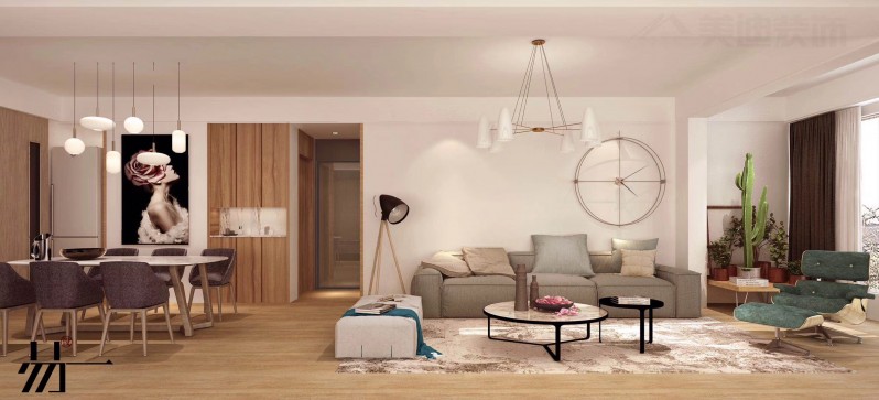 以下就是效果圖啦!感覺像是用廣角拍攝呈現(xiàn),100平看起來仿佛像1000平。