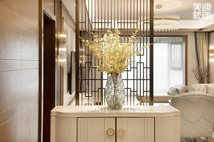 中式元素與現(xiàn)代材質(zhì)的巧妙兼柔,在這個新中式風格的小家里,足夠烹飪出屬于你們獨特的愛情佳肴。