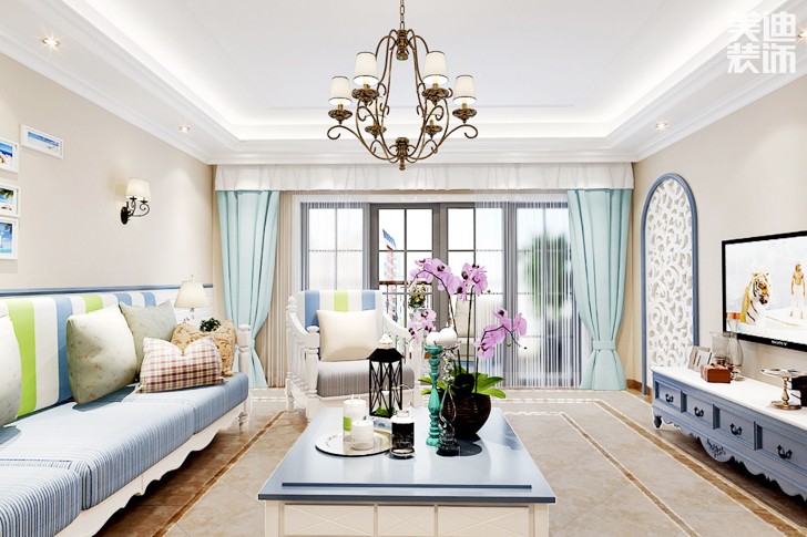 比如說家里的窗簾、沙發(fā)布等軟裝盡可能選用藍白等顏色,能夠很好的體現(xiàn)地中海風格的浪漫情懷。