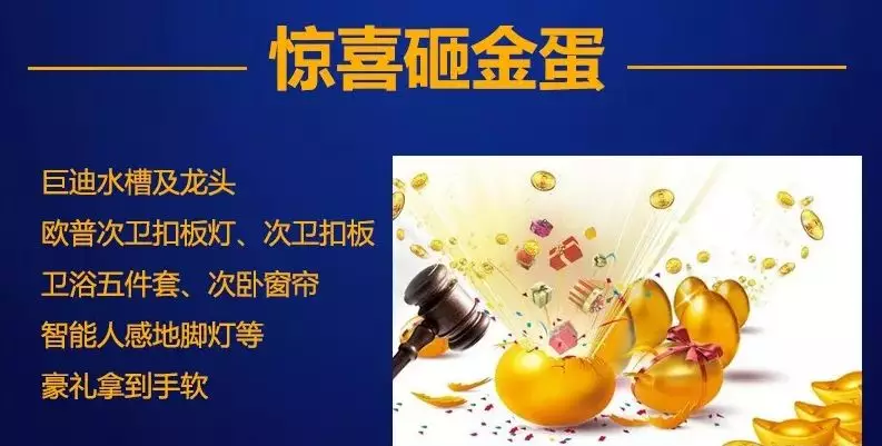 現(xiàn)場(chǎng)簽約的業(yè)主可參加驚喜砸金蛋游戲,把巨迪水槽、衛(wèi)浴五件套、智能人感地腳燈等驚喜大禮帶回家!百分百中獎(jiǎng),花樣好禮等你來(lái)解鎖