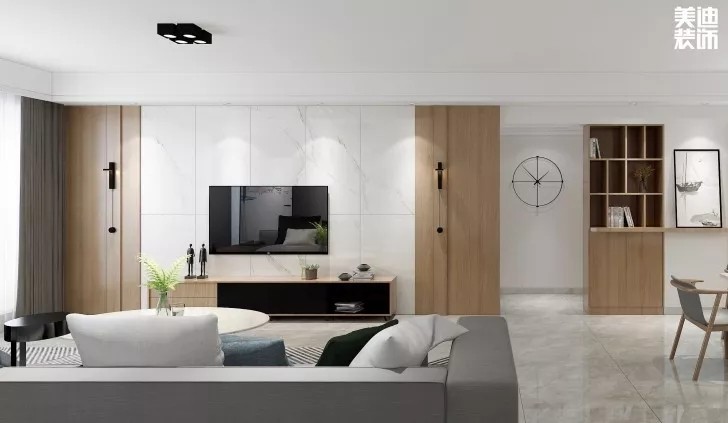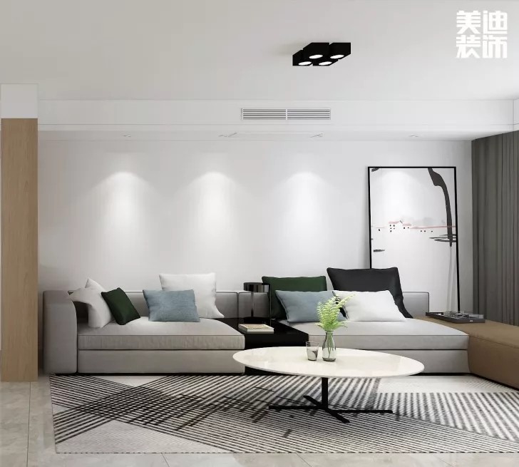 以灰白色為主色調(diào),淺灰為基,純白為輔,佐之以深色系家具和軟裝,不艷麗也不乏味。