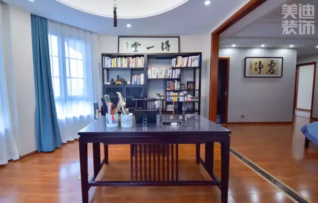 ▲黃進(jìn)設(shè)計(jì)師用硯臺和書法打造了一個(gè)古聲古色的現(xiàn)代中式書房