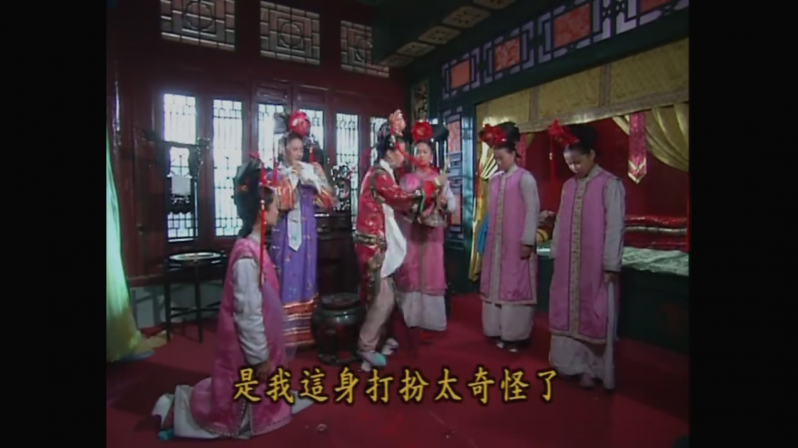 小燕子的“漱芳齋”算是很豪華了,紅木的門,綠色的床榻,配上黃色的床簾,色彩艷麗的宮廷風(fēng),一種低調(diào)而不失奢華的畫面質(zhì)感。