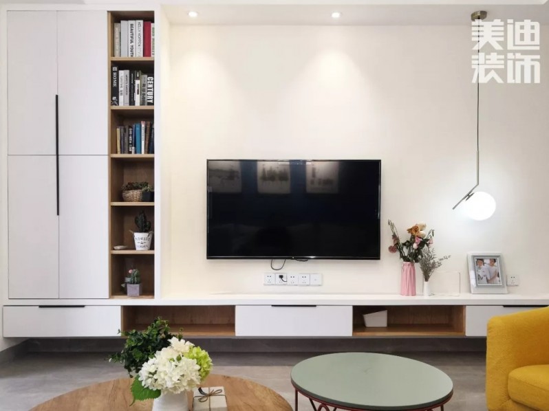 雖然新家面積不算小,但我很注重收納,這樣整理東西才不會亂,這一點設計師也早就考慮到了。在客廳、廚房都有收納的地方,可以看到電視機旁設置了夾層和儲物柜,可以放一些書籍、裝飾品以及其它物品,美觀大方又實用。