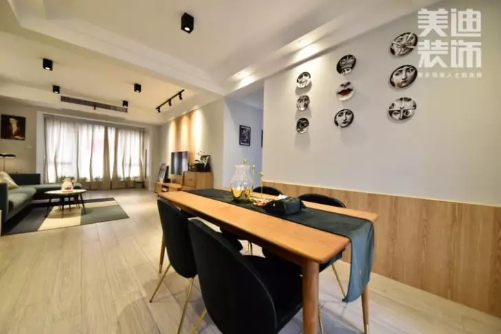 富有線條感的原木條幾,配以布藝的吸頂燈,傳遞著一種寧?kù)o的禪意。