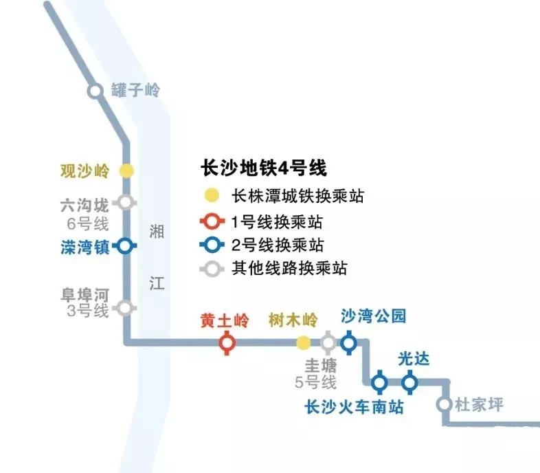 ●可通過(guò)地鐵4號(hào)線觀沙嶺、樹(shù)木嶺2座車(chē)站與長(zhǎng)株潭城際鐵路換乘。