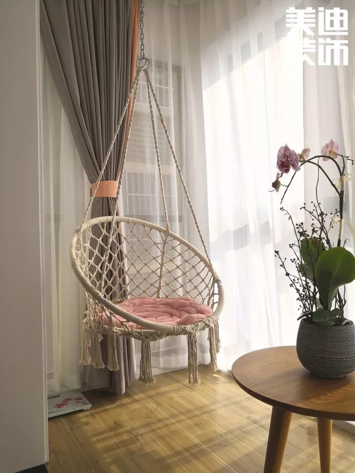 但也不要認為封了陽臺就不能裝扮了,可以在陽臺安裝一個吊椅,旁邊放一些盆栽,在天氣暖和的時候拿上一本書看著,豈不是很悠閑。