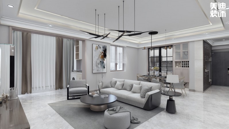 陳錦設(shè)計(jì)師的這套案例作品有很多特點(diǎn),張弛有道,低調(diào)卻不空虛,自由卻不放縱,精致卻不盲目,這樣的輕奢式生活態(tài)度無疑是愜意的。全屋采用了大面積的灰白,外加金屬和木質(zhì)家具,整體風(fēng)格簡約大氣。