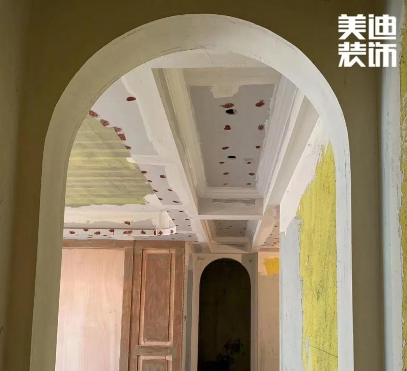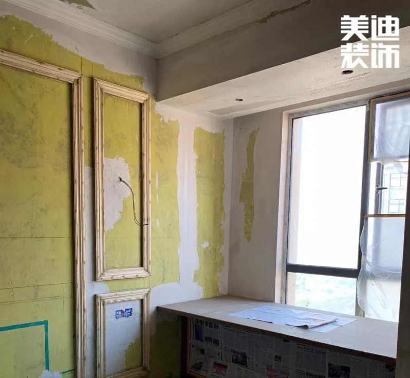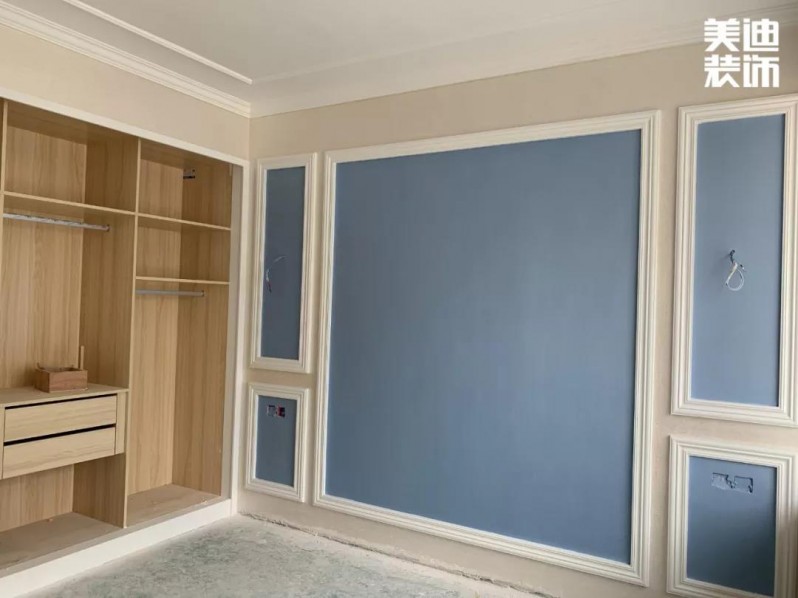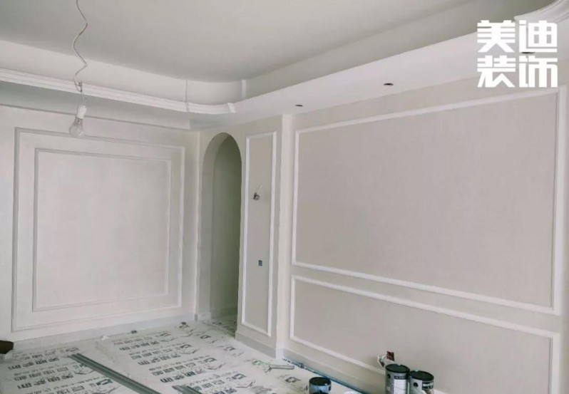由于是歐式風(fēng)格,石膏線是必不可少的,之前看了很多的案例圖和實(shí)景圖做了大量的功課,發(fā)現(xiàn)平平的墻面只要加了石膏線就立馬不一樣了。油漆是六月份開始,先是做了石膏線,線條安裝完畢后,油漆工繼續(xù)進(jìn)來,先把有釘子的地方都填填補(bǔ)補(bǔ),弄好了就好噴漆啦!