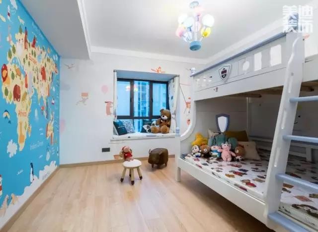 兒童房以童趣為主,要注意下小朋友的心理。要在兒童房的功能性上多下點功夫,要給他留點自己的小空間。另外,由于孩子的活潑好動性,兒童房的安全性也不能疏忽!