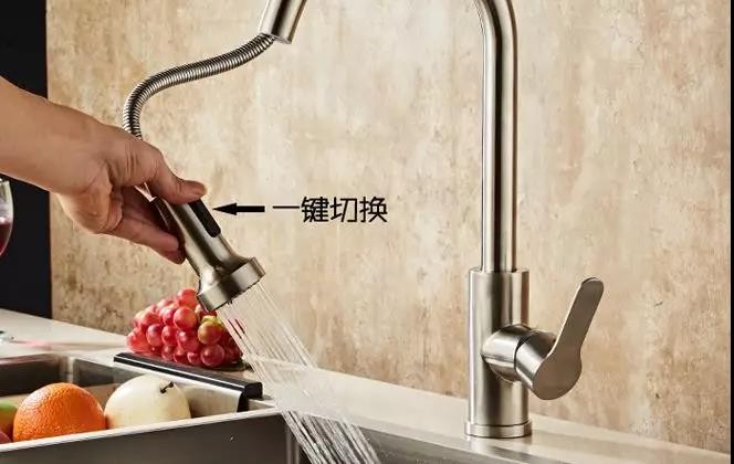 使用時不僅可以隨意調(diào)節(jié)高度,還有兩種起泡和花灑兩種出水方式。采用旋轉(zhuǎn)出水設(shè)計,清洗餐具時無死角。