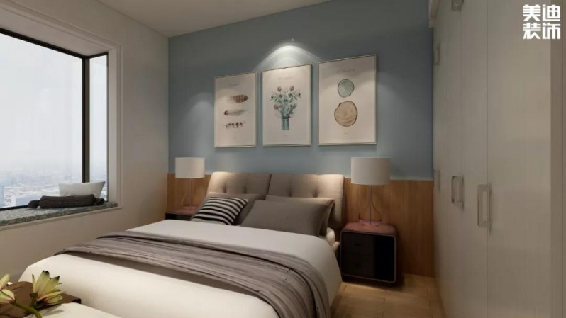 小戶型的墻常用有后退感的顏色,也就是純度低、明度高、冷色相的顏色。特別是用在窗簾、墻面、裝飾畫上的時候,會有種“我離墻面好遠”的錯覺。