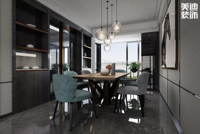龔廣輝老師建議:餐廳通常面積有限,小戶型中的餐廳,不要東拼西湊,家具的擺放位置以及尺寸要格外注意。最后在餐桌的選擇上,可選擇橫向餐桌,更有利于拉長空間。