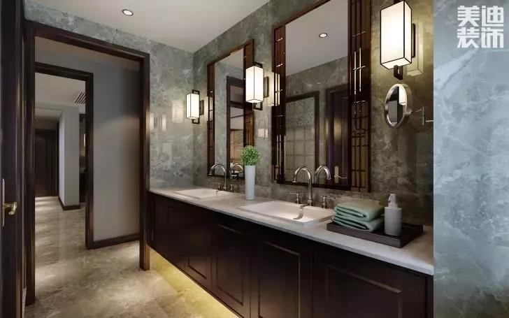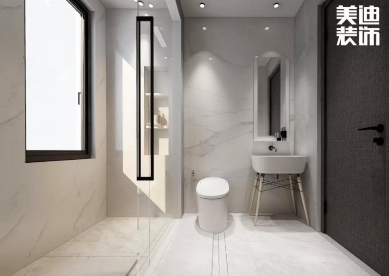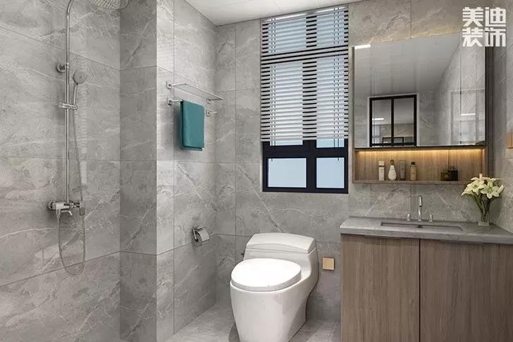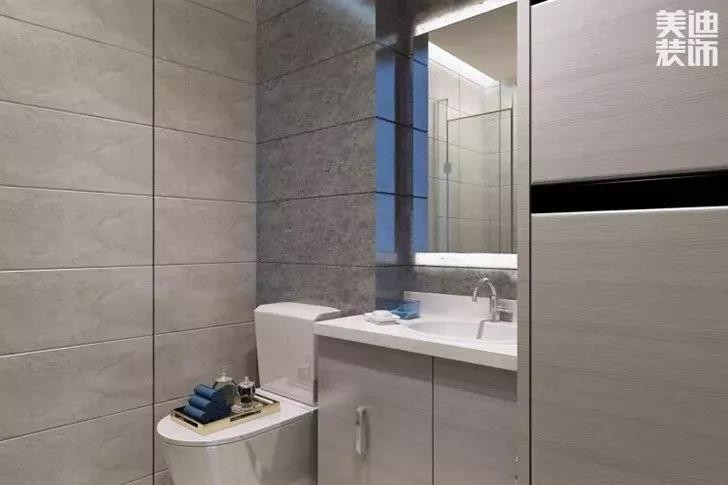 選擇主燈+輔燈的方法增加采光,還能夠讓衛(wèi)生間增加溫馨的感覺,減少冷艷感。