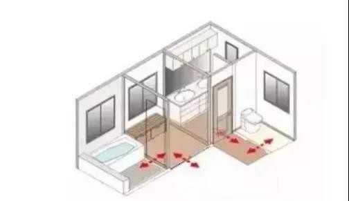 這種做法比較類似國(guó)內(nèi)最近開始流行的干濕分區(qū)的做法。占用空間并不大,但是能夠比較有效的阻止水蒸氣災(zāi)害。