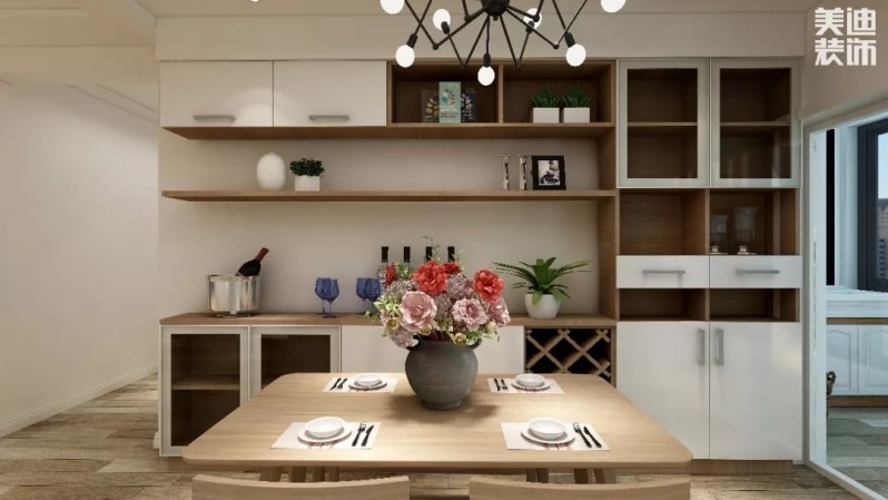 全房全景可快速實現個性設計,現場隨時更換材質和花色,客廳背景墻墻紙、餐廳吊燈、廚房瓷磚花色等,可以根據自己喜好進行一鍵隨心修改設計,你家的裝修你決定。