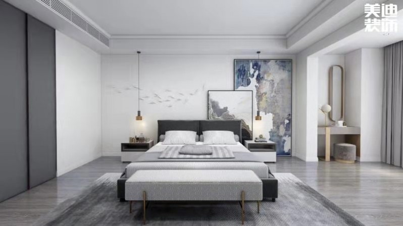 簡約的臥室設(shè)計,整體空間感的簡約,就需要在色彩的對比上體現(xiàn)出來,朱倪設(shè)計師大膽而靈活的設(shè)計,不單是對簡約風格的遵循,也是個性的展示??此坪唵坞S意,卻在細節(jié)處彰顯著藝術(shù)美學。