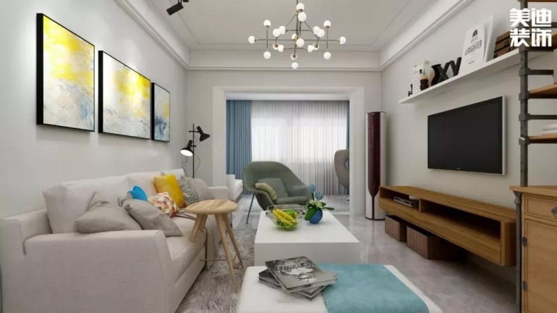 墻面是白色,沙發(fā)的顏色就百搭了,一般黑和灰都不會錯。想要北歐,就選流行的馬卡龍。想要簡約,基本任何柔色調都可以。