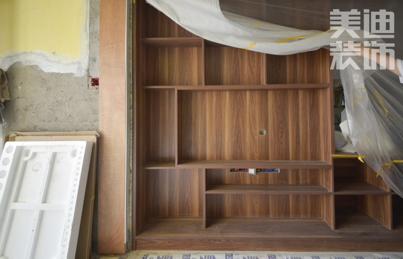 而且木工師傅在對(duì)電視柜,書柜等柜背無(wú)磚墻做隔音墻的時(shí)候,槍釘固定在柜背板上,再將隔音棉切割分塊壓合在龍骨的空位上。