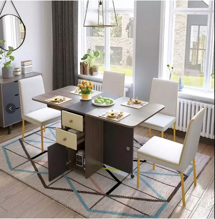 變大變小的餐桌,適合父母/朋友偶爾過(guò)來(lái)吃飯的家庭,不使用時(shí)不占空間,使用時(shí)將其打開即可。