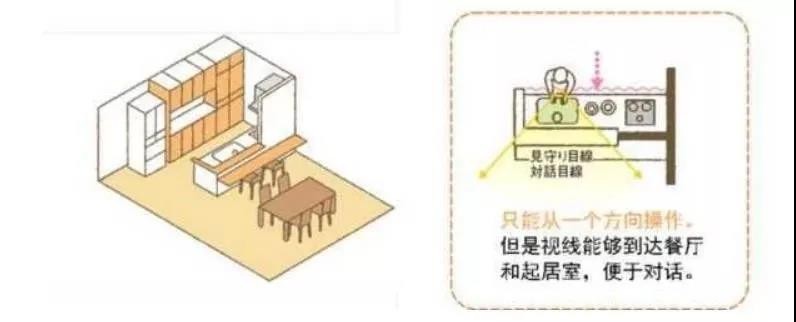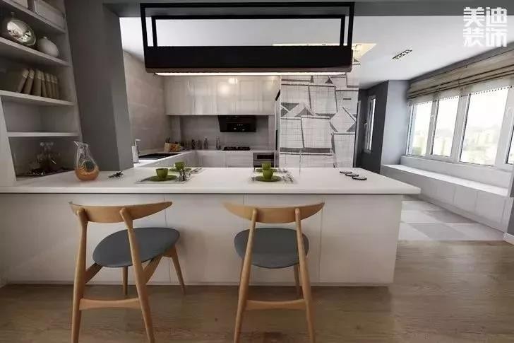 像這樣的小吧臺(tái)餐廳形式,它更適合不常做飯或輕油煙的家庭,如果是需要經(jīng)常做飯和重油煙的,還是選擇其他方法吧!