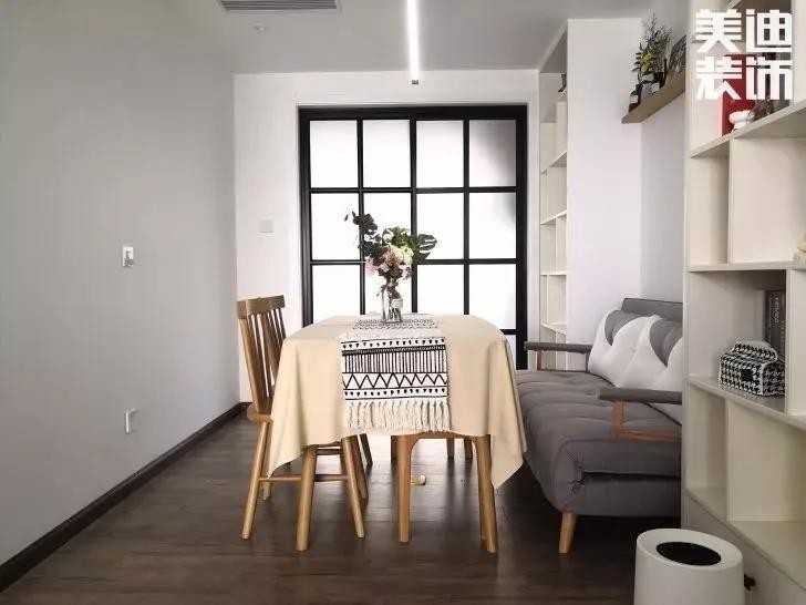 對(duì)很多小戶型來(lái)說(shuō),家里的餐廳要怎么布置,是一個(gè)比較難解決的事,因?yàn)樵镜目臻g劃分中就沒有餐廳空間,在這樣的戶型中,要布置一個(gè)常規(guī)的餐廳區(qū)域,有點(diǎn)困難。