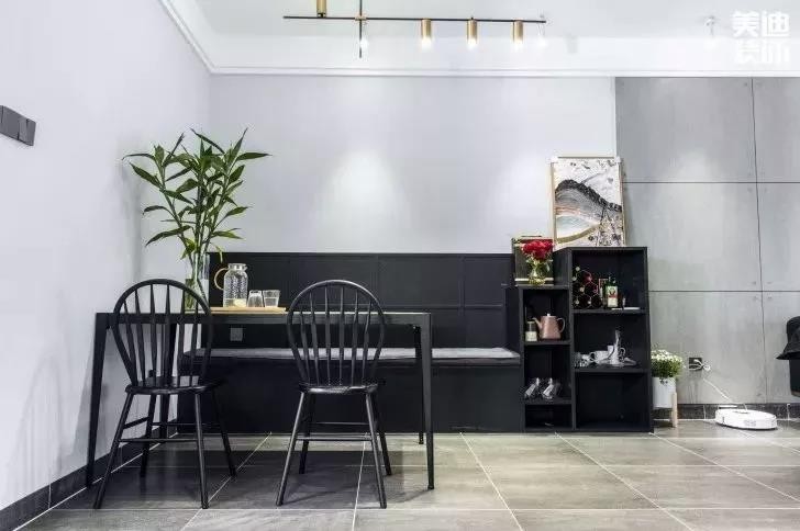 而且卡座可以和收納結(jié)合起來(lái),不如進(jìn)門就是餐廳的戶型,把卡座和矮鞋柜結(jié)合,上方還可以擺放綠植和裝飾畫,更加美觀。