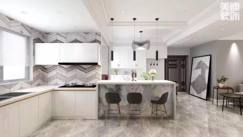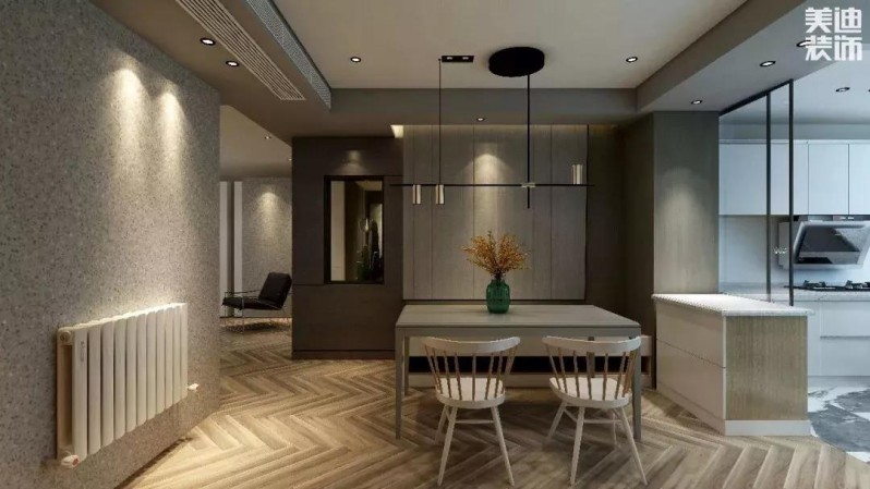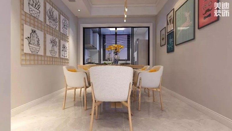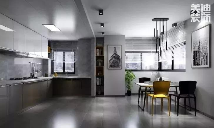 因?yàn)槊娣e有限,一旦用實(shí)體墻把餐廳和廚房劃分開,無(wú)論是做飯還是吃飯,都會(huì)感覺很壓抑。這時(shí)候打通墻面,就能大大提高空間的利用率,解決空間不足的問題。