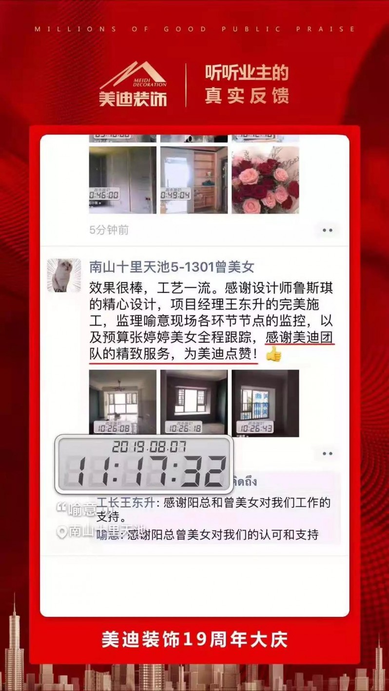 19年的成長,19年的歷練,美迪裝飾成為更多精英人士的放心選擇。感謝業(yè)主每一份信任與選擇;未來與你同行,美迪因你們更精彩!