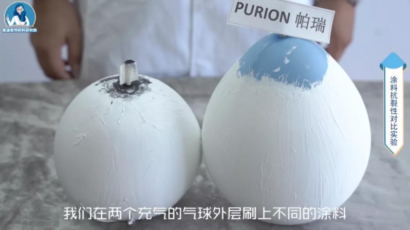 測(cè)試方法:觀察法,我們將兩種品牌涂料涂在氣球上,靜置一夜等待涂料固化后,將氣球放氣,觀察放氣后氣球的變化情況。