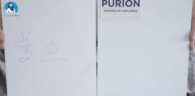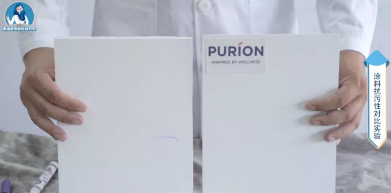 測(cè)試方法:觀察法,我們可以用畫(huà)筆在帕瑞樣板與其他品牌墻漆樣板上涂寫(xiě),用濕毛巾擦拭,觀察擦拭后樣板的狀態(tài)。