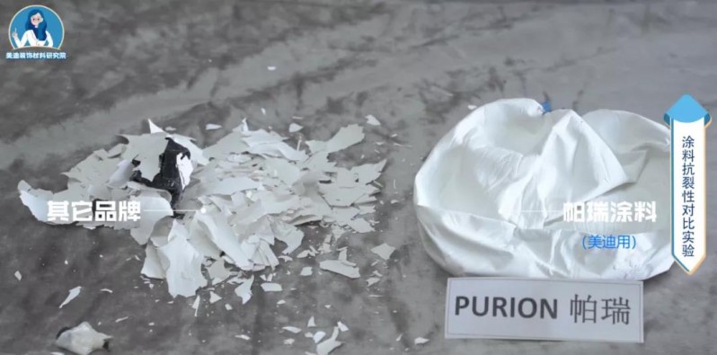 測(cè)評(píng)結(jié)果:從上圖我們可以看到,其他品牌在放氣過(guò)程中有明顯撕裂,破裂處有明顯粉末掉落;而帕瑞涂料漆膜完整,有較強(qiáng)延展性,施加外力也不易破裂和粉化,使用壽強(qiáng)于其他品牌。