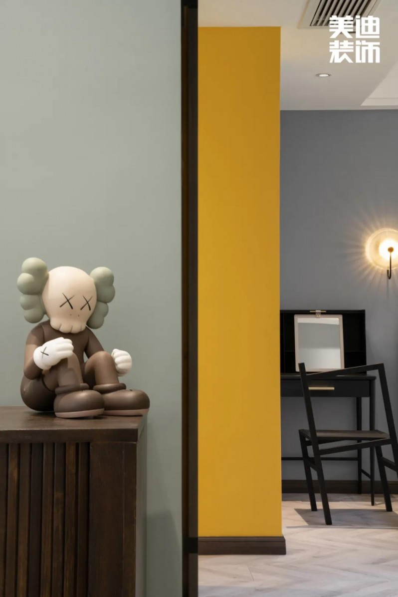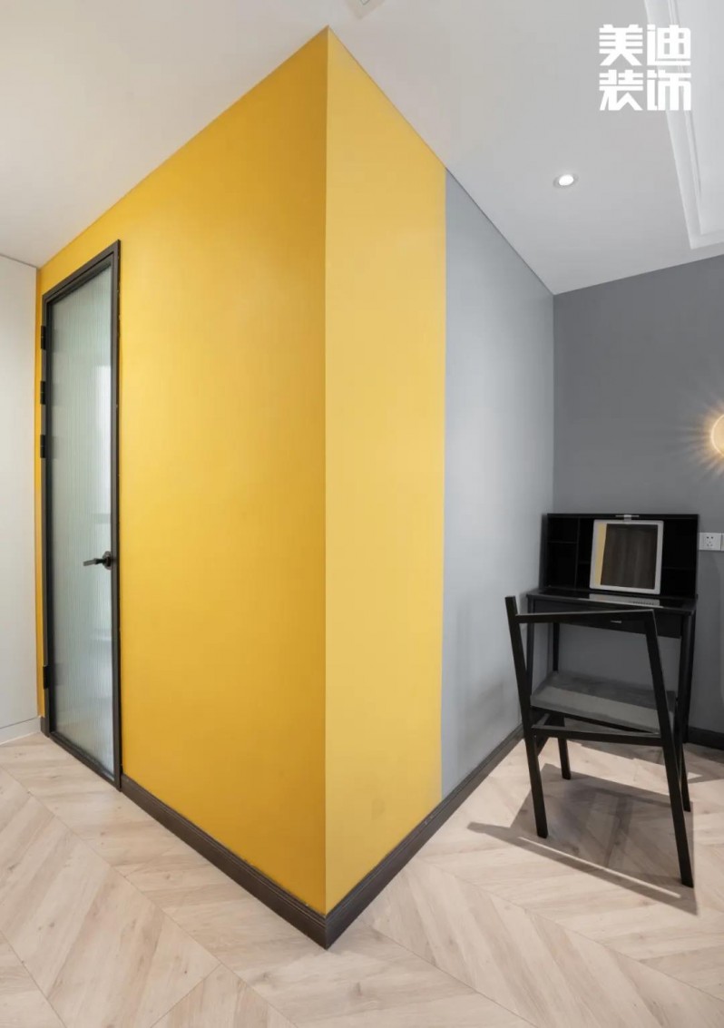 轉(zhuǎn)角黃色設(shè)計(jì),看似突兀,實(shí)則不然,黃色的點(diǎn)綴讓室內(nèi)環(huán)境更加輕快活潑,帶來(lái)無(wú)限活力。黃色墻面搭配木地板,自然又舒適,讓室內(nèi)空間更溫馨。