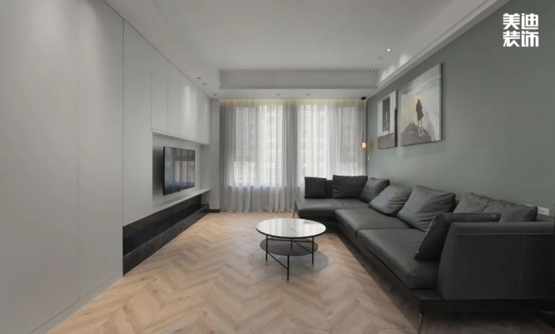 設(shè)計(jì)師以莫蘭迪無(wú)風(fēng)格的硬裝,把家以清新自然的方式呈現(xiàn)出來(lái)。開(kāi)放式空間設(shè)計(jì),把空間留給生活;巧妙搭配色彩,讓色彩在每個(gè)有儀式尊嚴(yán)的空間自由呼吸;打造整面隱藏壁柜藏在電視背景墻后,十多個(gè)立方的巧妙收納隱藏。自然生活融入簡(jiǎn)單色彩搭配,把生活留給自己。
