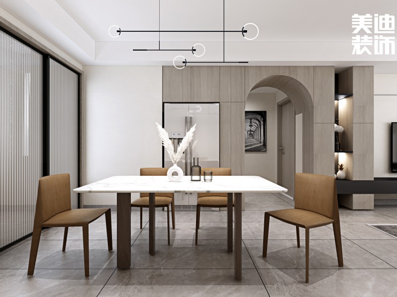 柜子隔斷立在中間,兩邊都可以通向餐廳,讓空間形成環(huán)行動線,非常方便。