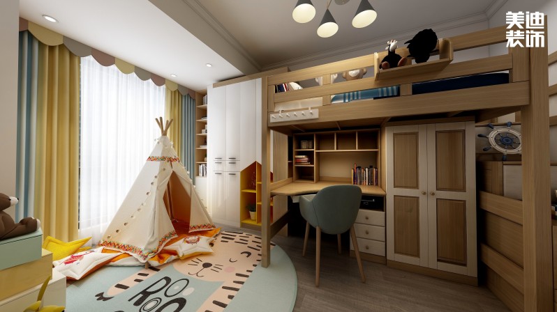 包括衣柜、書柜、床、地板、窗簾等在內(nèi)的一切元素,都遵循統(tǒng)一原則,一體式的方式達(dá)到完美的視覺延伸效果。
