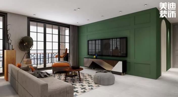 對(duì)于橫廳的戶型來說,如果沙發(fā)電視分別都靠在相對(duì)的墻上,距離太遠(yuǎn),觀感體驗(yàn)差。此外,由于走道橫在中間,看電視時(shí)候有人來回走動(dòng)也會(huì)影響體驗(yàn)。