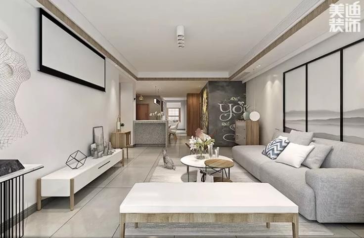 比如一邊是沙發(fā)桌椅,另一邊可以做開(kāi)放式書(shū)房、游戲區(qū),或者品茶的區(qū)域,在保證功能的同時(shí),客廳依舊保持了一個(gè)整體。