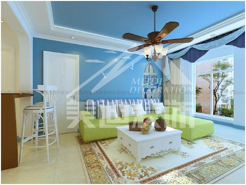 通過以海洋的蔚藍色為基色調的顏色搭配方案,自然光線的巧妙運用,富有流線及夢幻色彩的線條等軟裝特點來表述其浪漫情懷。