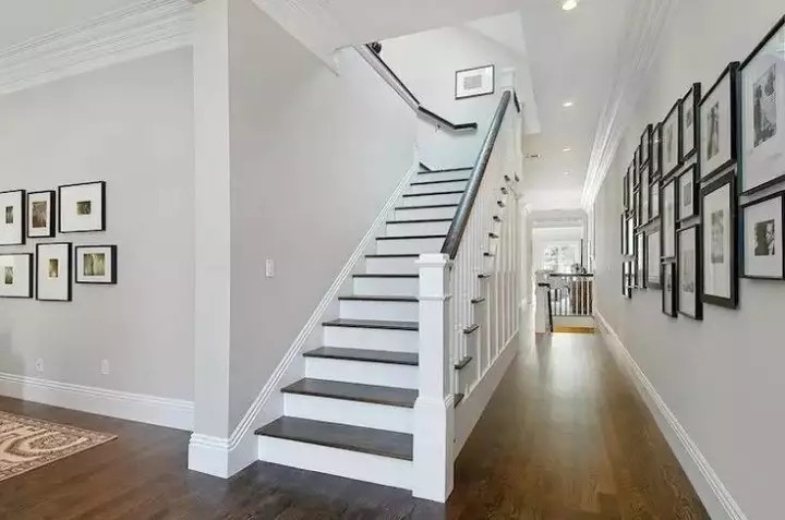 在轉(zhuǎn)角以及樓梯的地方,設(shè)計(jì)深色系的踢腳線會(huì)讓你家產(chǎn)生一種視覺(jué)的延伸感,層層深入地感覺(jué),增強(qiáng)房間的立體效果。