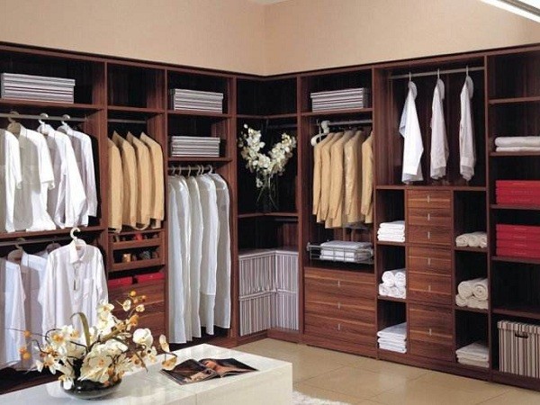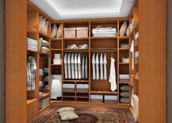 衣帽間家具可以再外面購買,也可以在裝修時整體設計制作,為節(jié)省空間,衣帽間最好設計成推拉式,里面的衣櫥可以不做門。