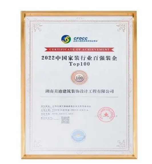 ▲湖南美迪裝飾榮登“2022中國家裝行業(yè)百強(qiáng)榜”