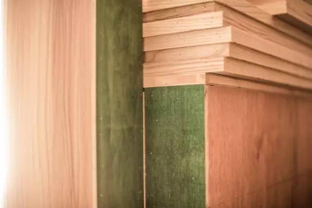 現(xiàn)場木作工藝,講究橫平豎直,切口平整。