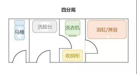 四分離的形式在國(guó)內(nèi)使用的比較少,使用于相對(duì)而言戶型比較大的空間,這樣的分離法讓一家人可以同時(shí)使用這幾個(gè)區(qū)分開(kāi)來(lái)的不同功能,是一個(gè)比較完美的解決方法,但是大家要慎用哦,需要根據(jù)自家的戶型情況來(lái)做最合適的選擇,才能收獲一個(gè)美美的又舒適的家啦。