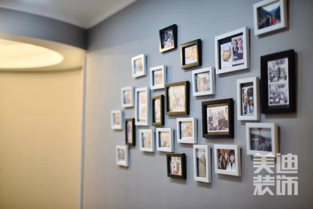 灰色的墻面背景與白色的相框很好的融合在一起,凸顯極具格調(diào)又溫馨的氛圍。