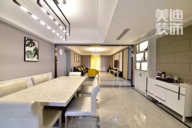 包括客廳上的吊燈,也是極具設(shè)計(jì)與線條感,與壁畫的搭配相輔相成。