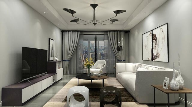 客廳同樣延續(xù)既簡(jiǎn)的風(fēng)格,黑白電視柜搭配上黑色的茶幾和凳子,墻壁上在裝飾上簡(jiǎn)單的一兩副畫,一個(gè)高冷的空間就立刻呈現(xiàn)在你的眼前。不需要太多的裝飾,也不需要太多繁復(fù)的設(shè)計(jì),整個(gè)空間莊重而樸素。